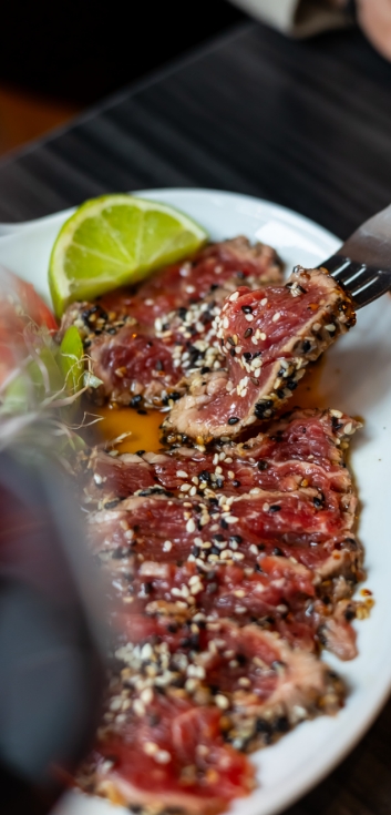 Welke gerechten kun je allemaal op onze menukaart vinden? Wanneer je bij ons langskomt, kun je kiezen uit koude en warme ‘shared dining’. Bij een koude ‘shared dining’ vind je bijvoorbeeld tataki tonijn met gerookte heilbot, radijs, ponzu, sesamolie en kaviaar, steak tartaar met een sjalotjes, kappertjes, ei en mosterdsaus of een verrukkelijke groene salade met groene kruiden en ui. Wij serveren dus zowel vis, vlees als vegetarische gerechten.